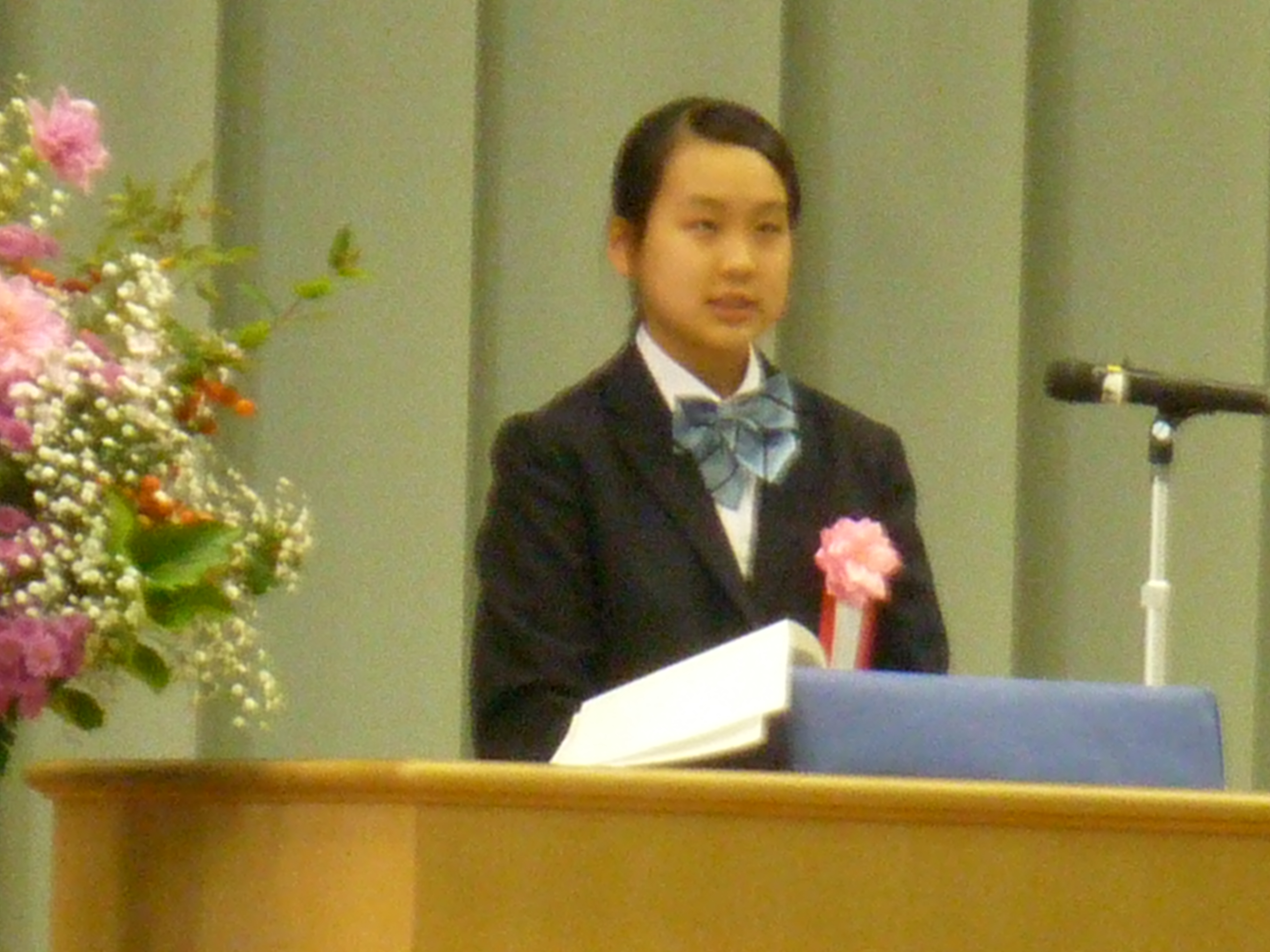 本校からは、各学年を代表して3名が発表。1年生の二瓶 真桜さんは、特設合唱部での経験を、2年生の増井 陽菜さんは、バレーボール部のキャプテンとして学んだことを、3年生の佐藤 謙多くんは、部活動や沖縄の研修交流を通して感じた「感謝の大切さ」を発表してくれました。内容的にも深いものがあり、発表が終わると会場から大きな拍手をいただきました。