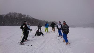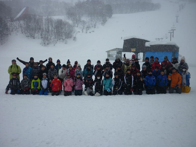 当日はあいにくの天候で、雪が舞う中での実施でしたが、スキーをするにはある意味ちょうどいいのかもしれません。雪不足と前日までの温かい天候で、ザラメの雪の上に新雪がつもるという、初心者には苦労するゲレンデながら、けが人も無く終了できました。