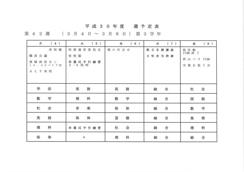 3年生のみなさんに、来週の予定のお知らせです。確認して登校してください。