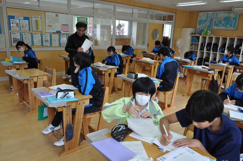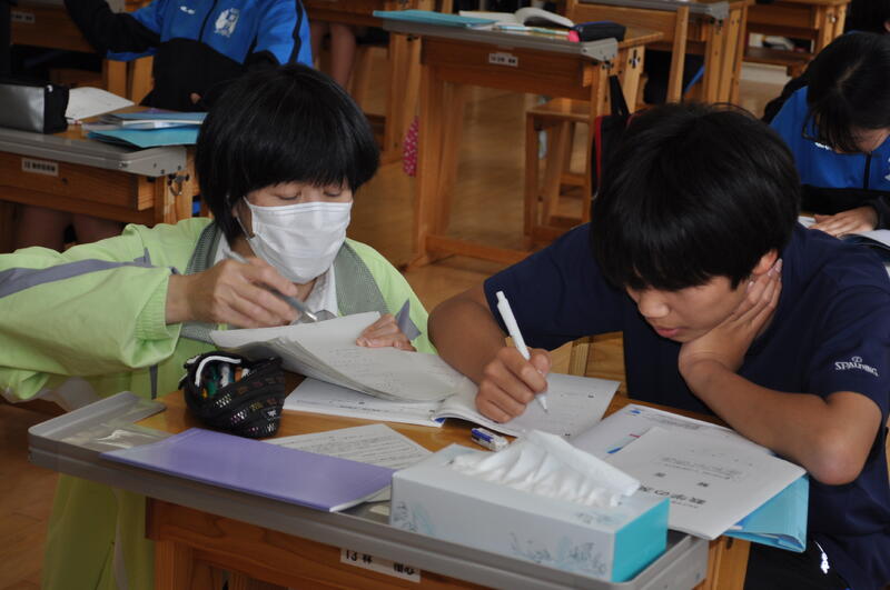2023年5月25日 12時23分本日3年生の4校時目の授業は数学で,多項式について学習していました。生徒のみんさんは,いろいろな式の展開について,先生のアドバイスをもとに練習問題に取り組んだり,友達と教えあいながら答えを導き出したりしていました。