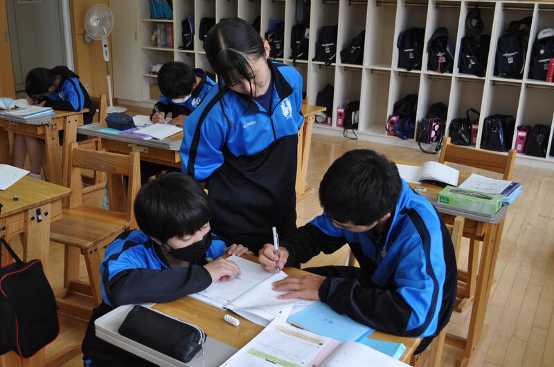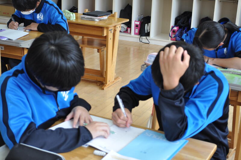 本日3年生の4校時目の授業は数学で,多項式について学習していました。生徒のみんさんは,いろいろな式の展開について,先生のアドバイスをもとに練習問題に取り組んだり,友達と教えあいながら答えを導き出したりしていました。
