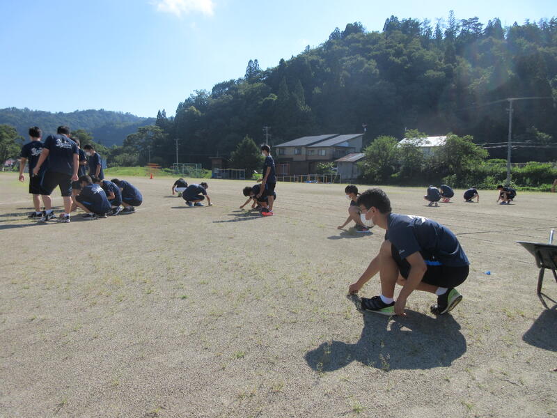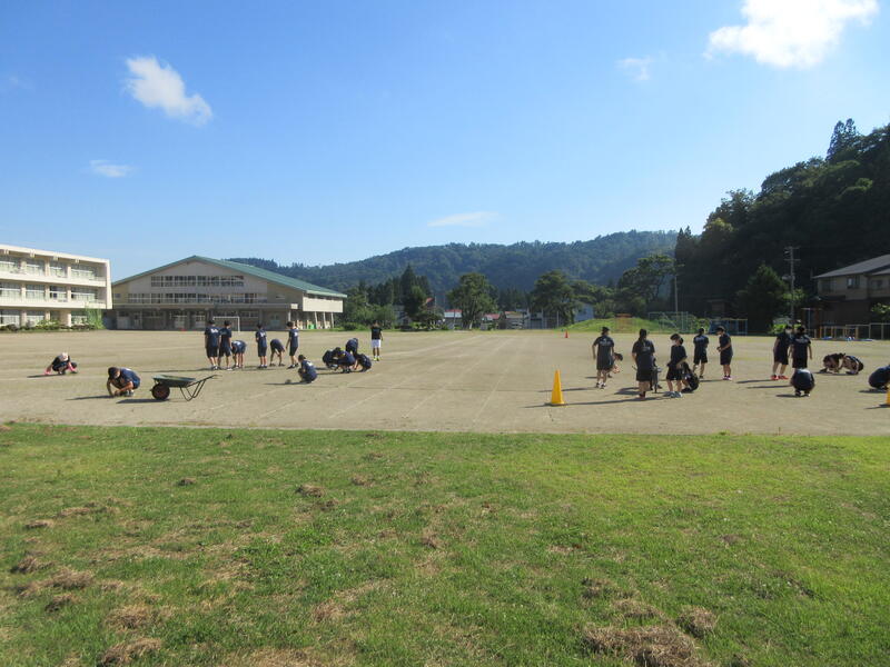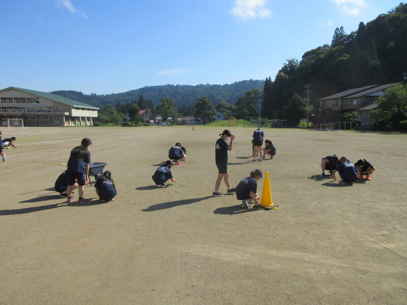 駅伝練習及び体力作り運動が始まる前の15分間を使って,ボランティア活動の一環として校庭の除草作業を実施しました。本日,諸活動に参加するため登校していた生徒と,顧問の先生方で行いました。