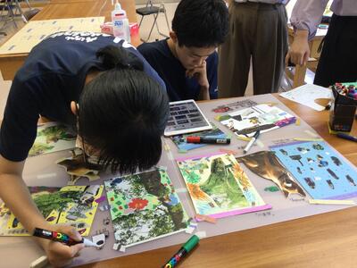 8月19日(木)~8月28日(土)の期間、赤べこ商店街休憩所に「やないづまちなかアートプロジェクト」の一環として、文化部の生徒が作成した作品が展示されています。これまで文化部の生徒たちが、地域おこし協力隊である谷野さんと塚原さんのご指導のもと仕上げた作品です。お時間のある方は、ぜひ、見に行っていただければと思います。