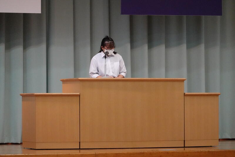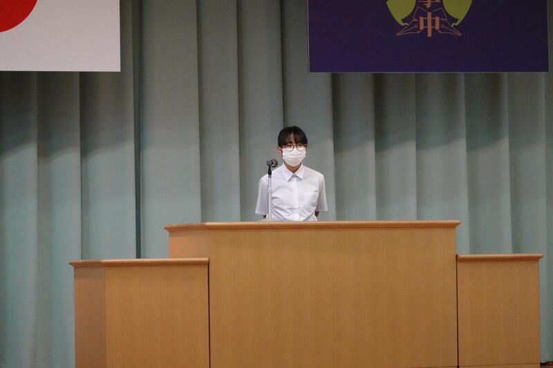 始業式終了後に,「夏休みの反省と2学期の抱負」と題して,3名の生徒の発表が行われました。どの生徒も夏休み
