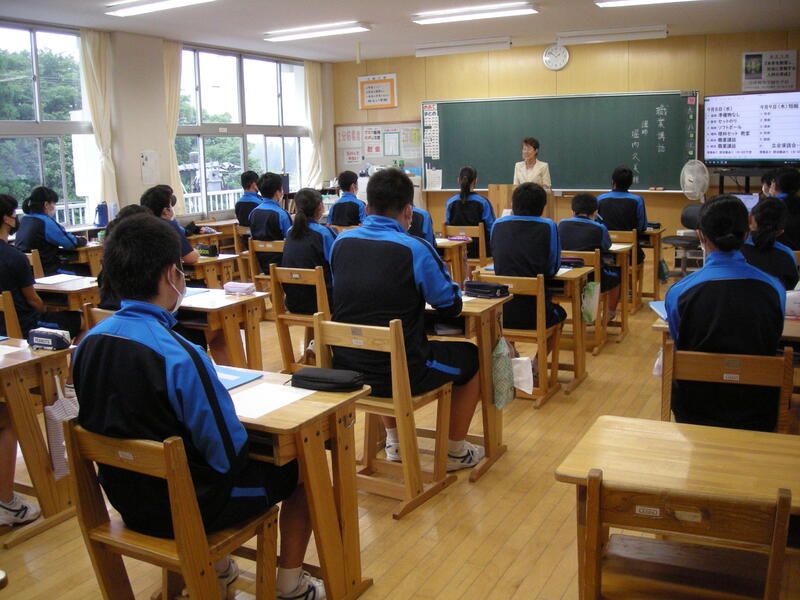 本日の5・6校時,第2学年教室において,職業体験学習に向けた「職業講話」を実施しました。昨年に引き続き,瀞流の宿かわちの女将である堀内久美様を講師に迎え,「職業体験学習に望む心構え」と題してお話しいただきました。