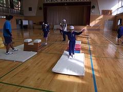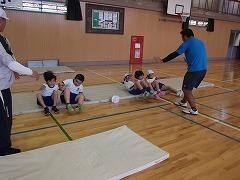 運動遊び」、3・4年生には「跳び箱運動」、5・6年生には「マット運動」の指導をし
