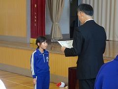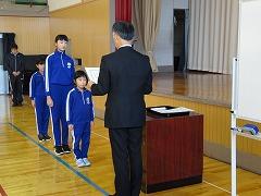 朝の「全校のつどい」で賞状の伝達を行いました。