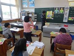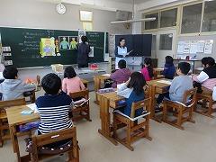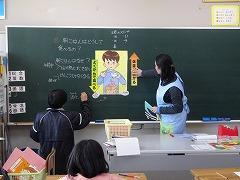 町の給食センターの栄養士の先生に来ていただき、3・4年生の食育の授業を