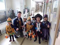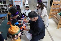 仮装をしている先生もいて、子どもたちは驚いていましたが、最後は、お菓子を