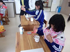 歯の模型で、歯並びや乳歯と永久歯との関係などを確認しました。