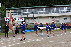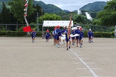 校庭の状況を考慮し、30分遅らせて開会しました。