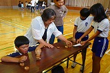 当日は、授業参観に加え、「昔の遊び」と「給食試食会」を行い、子ども達とふれ合いながら活動しました。