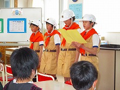 10日には、少年消防クラブの結団式を行いました。結団式では6年生に防災手帳とクラブ員章が手渡されました。6年生の代表児童が、防火・防災の誓いを下級生に向けて発表しました。