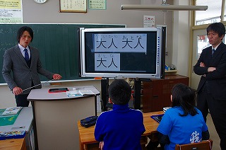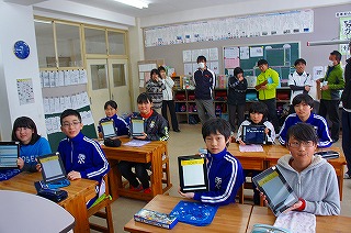 これは、柳津町でICT教育の推進を行っている事を受けて、西山中学校がiPadを数台貸与された物を使用した提案授業です。