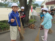 ※5・6年生は朝の活動として、現在も自主的に落ち葉掃きを実施しています。これぞボランティア精神!