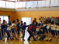 特に「じゃんけん列車」では、1年生が1番先頭の車掌になり、全校生を引き連れて列車を運行しました。とても楽しそうでした。