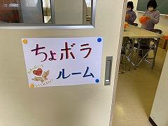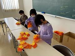 会議室には、「ちょボラルーム」の張り紙があり、中では下級生が花飾りを作っていました。卒業式の会場の飾りつけに使うものです。子ども達は、時間が空くと自主的に集まってきます。子ども達の心の温かさに、いつも感心しています。