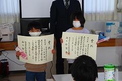 また、2時間目終了後に少年消防クラブ満了式を行われ、退会する6年生に期待書が送られました。少年消防クラブでは、この一年間、火災予防のための呼びかけをするなど活動してきました。中心となって活動してきた6年生から、下級生に思いを伝えました。