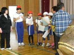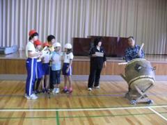 3校時目に、太鼓と唄と踊りの達人である子どもたちのおじいちゃんやおばあちゃんたちを講師に招き、西山音頭の練習をしました。何年かぶりの復活で、子どもたちは少し踊りを忘れ気味でした。でも、丁寧な指導により全員が踊れるようになりました。