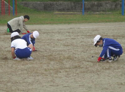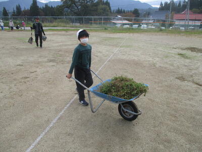 2024年10月16日 08時40分今日の朝の活動は、校庭の除草、石拾いです。