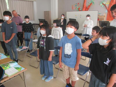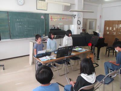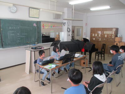 「日の丸」と「かっこう」の合奏と「やまびこ」の歌の発表でした。