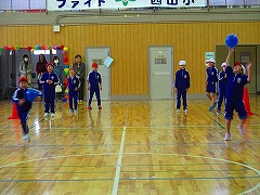 3・4年生は、体育館で「からだほぐしの運動」を中心に体を動かし、用具を使った運動をしました。