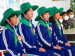 6年生4名が団員証書並びに装備品を授与され、6年生の代表児童が誓いの言葉を発表しました。