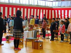1年生から5年生までは修了証書を代表者に手渡し、卒業生の4人へは、井関町長様はじめ多くの来賓の皆様方が見守る中で一人一人に卒業証書を手渡しました。