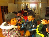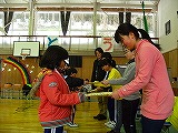 ゲーム終了後、各学年が6年生へ感謝の気持ちを込めたプレゼントを渡しました。