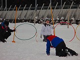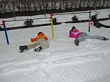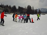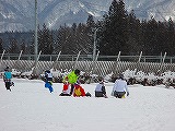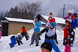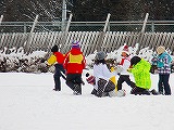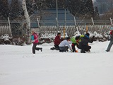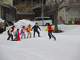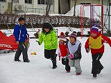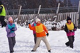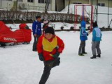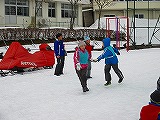 次に、学年毎の障害物競走をしました。雪上を走る上、フラフープの障害や6年生の通せんぼをくぐり抜けてゴールしなければならないので大変でしたが、子ども達は楽しそうに競技していました。