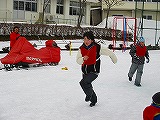 ふれあい集会では、まず、班対抗の雪合戦陣地取りを行いました。