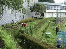 PTA奉仕作業は小中合同で行われ、校庭周辺の草刈りや花壇の草むしりを行いました。保護者の皆様の協力を得て校舎周辺はとてもきれいになりました。