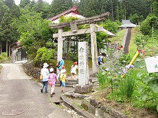 6月21日(火)に生活科の学習で黒沢の赤城神社に行ってきました。引率、案内を学校支援事業コーディネーターの菊地さんに依頼したところ、1年生児童のおばあさんにもご協力をいただくことができました。そのおかげで、赤城神社では遊具に乗ったり、生き物を探したりと楽しく活動することができました。