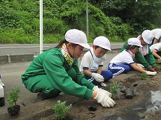 6月22日(水)、「ロードフラワー大作戦」のボランティア作業を西山小中学校の児童と生徒が一緒に行いました。作業でははじめに毎年ご協力を頂いている鹿野さんからお話をいただき、その後、中学生が小学生に花の苗の植え方を教え、一緒に作業をしました。