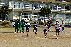 最初の練習だけに少し動きも鈍かった子ども達も、中学生の力強い走りに影響され、後半はきびきびと動いていました。