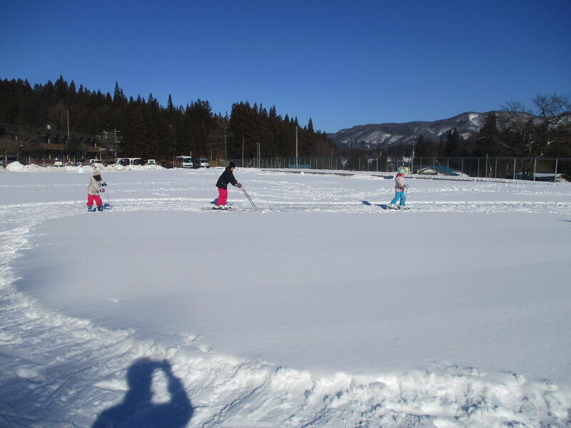 ただ、雪山が作れず、校庭で、歩行とスケーティングです。