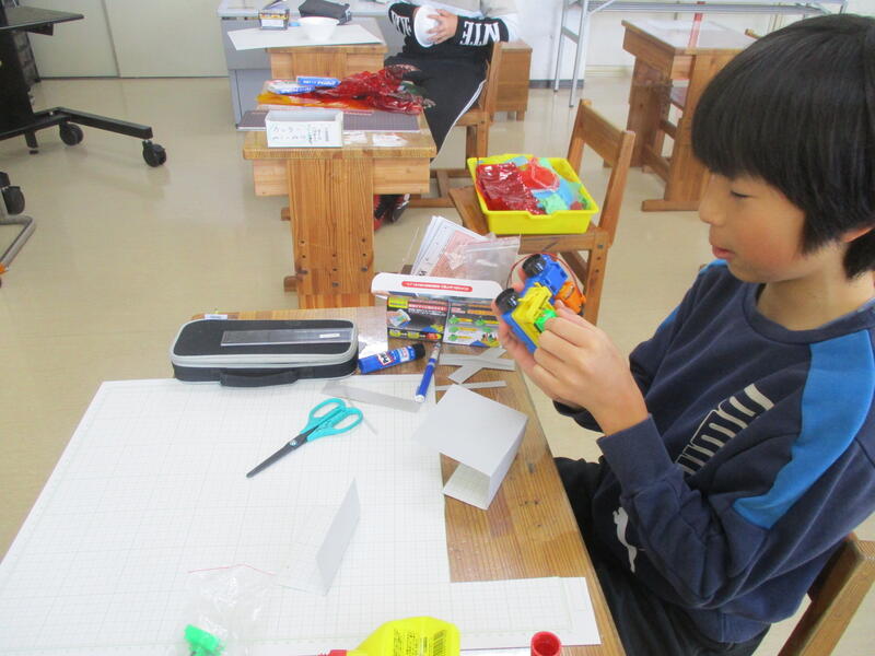 2023年12月14日 11時17分6年生が理科で学習したことをつかって、工作をしていました。