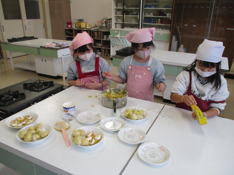 1,2年生はかかわる力。今日は、生活科で育てたサツマイモを使って、友達と協力して、調理していました。