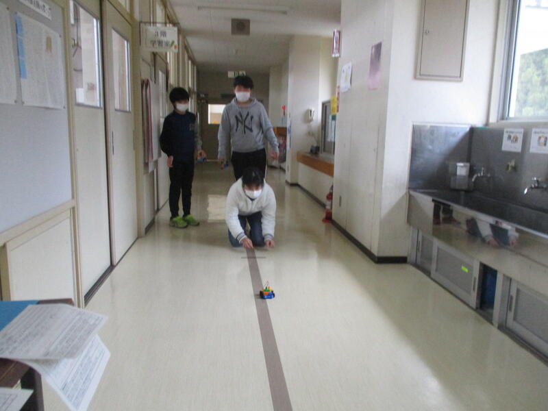 6年生は、電気をコンデンサーにため、モーターカーを、走らせていました。(なかなか高度です。)↓↓↓