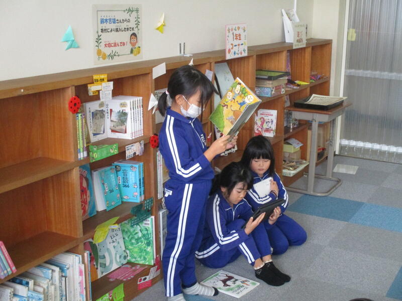 1,2年生は読書をがんばっています。4月から今まで合わせて250冊も読んだそうです。