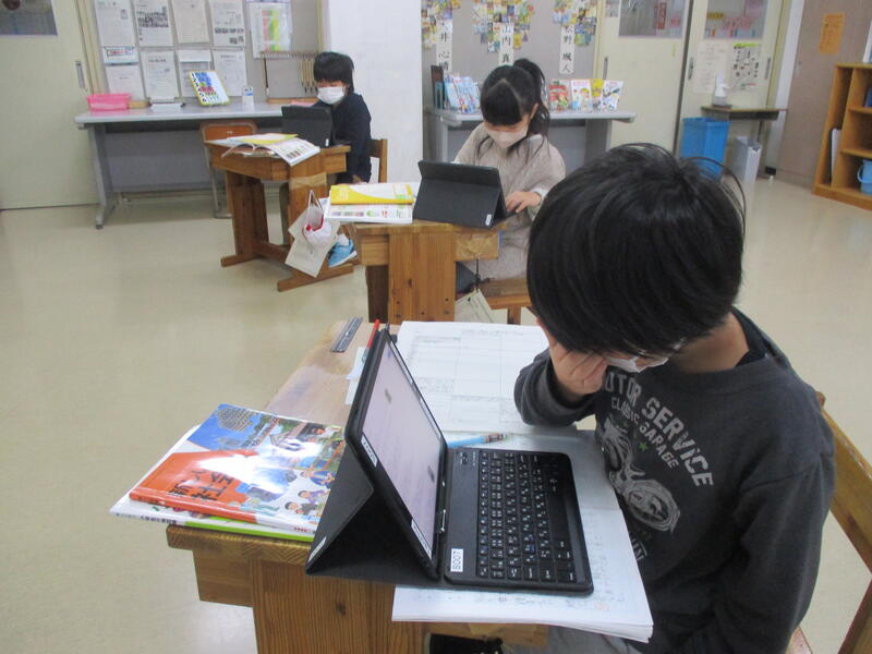 2023年11月30日 09時29分外は雪ですが、教室では子どもたちは、元気に授業。