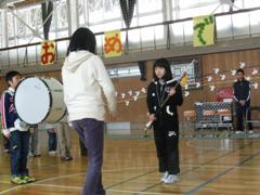 3月8日に、6年生を送る会を行いました。まず、鼓笛の移杖式を行いました。6年生の指揮者渡部雪乃さんから「西山小学校の伝統を受け継ぎ、次年度も素晴らしい演奏をしてください。」との言葉を添えて、5年生の新指揮者原雅さんに指揮杖が手渡されました。原さんは、「6年生に教えていただいたことを忘れず、心を一つにして演奏していきます。」と述べ、新鼓笛隊の演奏を6年生に捧げました。