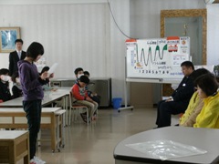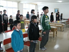 3月11日の全校のつどいで、「見守りボランティアの感謝の会」を行いました。西山駐在所の高木隆一様・見守りボランティアの鈴木キヌヨ様・小林幸子様・菊地由枝様がお出でくださいました。登下校の様子を見て気付いたことを、お一人お一人に話していただきました。今後登下校する際に参考になることがたくさんありました。その後、1年間の見守り活動に対して6年の杉藤美和さんが御礼の言葉を述べ、全校児童で「この星に生まれて」の歌をお聴かせし、感謝の会を終了しました。