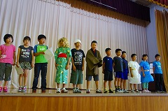 織り姫と彦星が別れ別れになってしまう顛末(てんまつ)の劇を、おもしろおかしく演じていたので、低学年生に大受けでした。(金髪?の織り姫が特によかったようです。)