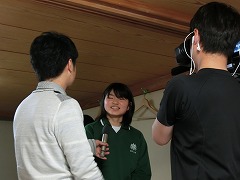 (写真右)インタビューに答える生徒会長。マイクを向けられることにも慣れてきました。