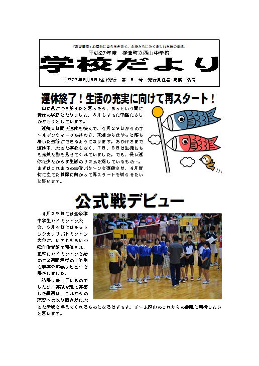このページでは、西山中学校から各学校や保護者の皆様へのお知らせやお願いなどを発信してまいります。