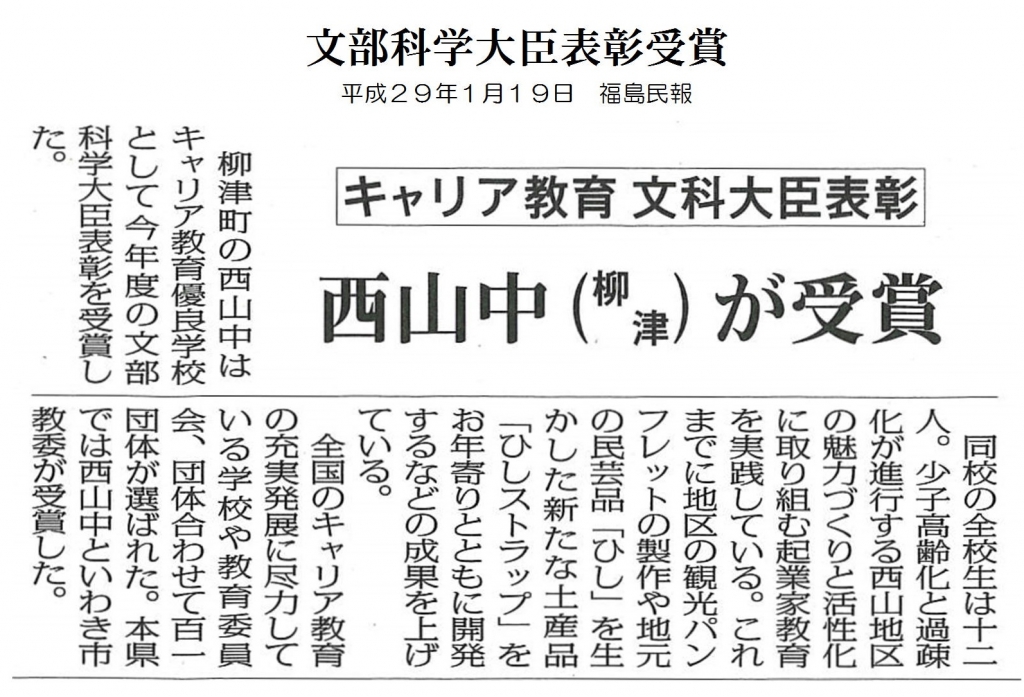 2017年1月19日 14時16分文科大臣表彰が、新聞に報道されました。