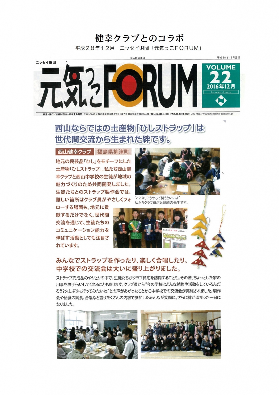 2016年12月21日 14時54分12月発行のニッセイ財団「元気っこFORUM」に西山中学校の活動が紹介されました。