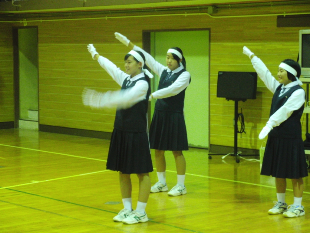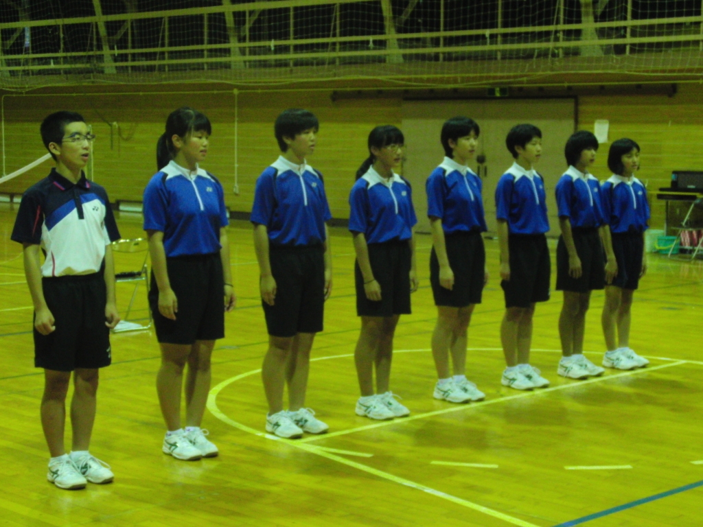 2016年9月26日 17時28分支部新人総合大会を明後日に控え、壮行会を行いました。3年生は今まで選手として応援を受ける立場でしたが、今回は新人戦なので制服を着て応援に徹しました。3年生のみの応援は今年度初めてでも、とても堂々としていて立派でした。1・2年生は今まで一緒にやってきた3年生の応援を受けて、8名全員が力を出し尽くしてほしいと思います。