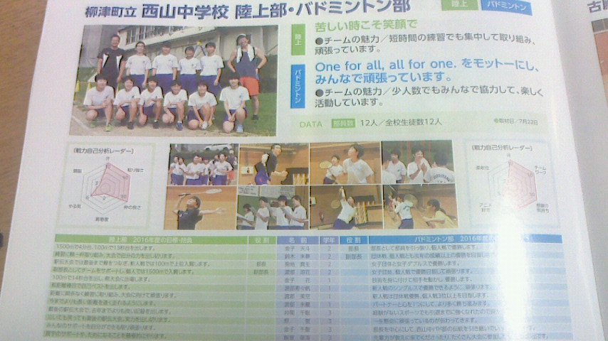 西山中バドミントン部&特設陸上部を福島県内のスポーツ雑誌【ありがと!Fsports】でカラー写真&インタビュー付で紹介していただきました。なななんと、河沼・大沼・耶麻郡内の学校では、初登場です!夏休み前に「少人数でも頑張っていると聞きまして…」と取材打診をいただき、当日は株式会社EHFGプロジェクト発行人の藤田健さん自らが取材へ。生徒の写真撮影&インタビューをしていただきました。